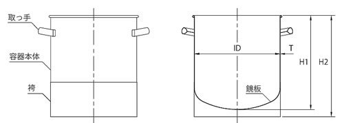 底面が鏡板形状のステンレス容器 品番 M1556TS-ST-18S 価格は下記をご覧ください |