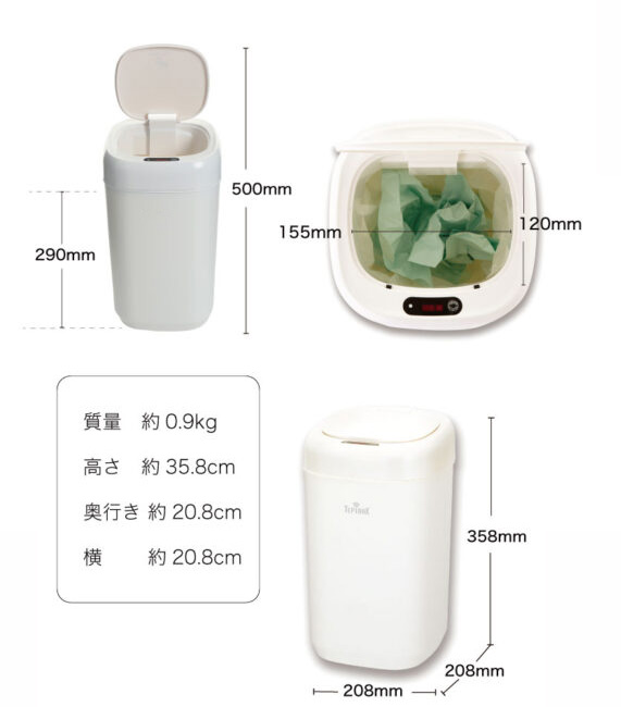 | 置き場に合わせて選べるサイズ 台所やトイレなどにちょうどいい9Lサイズと、リビングなどで使える35Lサイズがございます。 ![]() ■触れないから衛生的 手を近づけるとセンサーが感知し、蓋が開きます。約5秒後に自動で閉まります。 ●手を触れないから衛生的 ボディ部分水洗い可能で清潔さを保てます。 ![]() ●手動スイッチでも開閉可能 しばらく開いて欲しいときは、手動スイッチを押せば開きっぱなしになります。爪切りや料理中などに便利です。 ![]() ■ちょっとうれしい3つのポイント ●蓋つきだから匂いが漏れにくい◎ ●樹脂製でボディ部分は水洗い可能 ●ホルダーリングでゴミ袋を見せずに設置♪ ■インテリアに馴染むホワイトボディ ![]() ![]() ■タイプ ●M1841NT-9L ![]() ●M1841NT-35L ![]() ■仕様