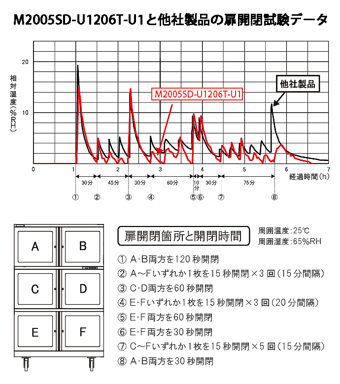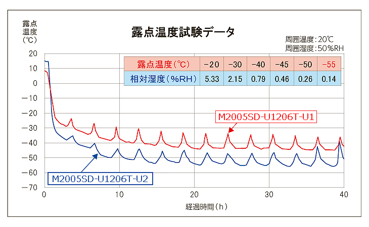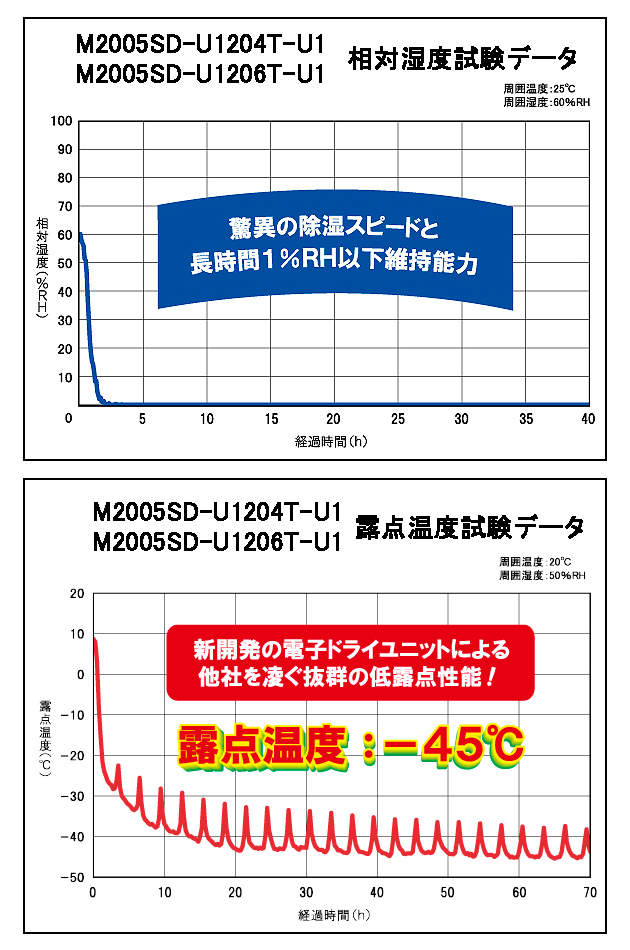 ●独自開発の日本製電子ドライユニット&除湿方式により、露点温度-45℃の超乾燥能力(M2005SD-U1206T-U2は露点温度-55℃)