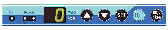 扉を開けずに庫内湿度を設定可能。温度・湿度の表示をワンタッチで切り替えられます。