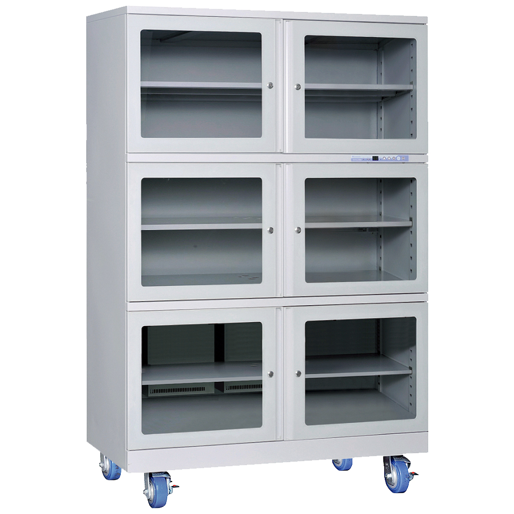 メーカー独自開発の(日本製)電子ドライユニットを2台搭載し、1台が加熱再生中のときはもう1台が除湿を維持するため扉開閉の多い工程や負荷の大きい収納物の保管に最適な超低湿保管庫です。