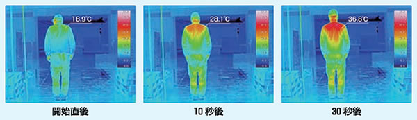 ■即暖性と深部加熱性を高める「オレンジヒート®」 独自開発した赤外線カーボンヒーター「オレンジヒート®」には、 即暖性と深部加温性を高めるスリット加工を施した、高純度カーボン フィラメントを採用しています。 指向性·即応性·対象限定性を 高めた制御設計を施し「狙って当てる熱源」へと進化させました。 ![]() ●高輝度スリット加工 高純度カーボン ×微細スリットで 高温·即応答のW性能 フィラメントの発熱効率を最大化。 瞬時に熱を放射し対象をスピーディに加温。 ●熱物理設計の最適化 1,250℃の高出力で 芯までしっかり暖める 人体への加熱効率を追求した設計。 輻射熱で衣服の下まで熱を届けます。 ●フィラメントの薄板化 わずか0.2秒の瞬間起動が可能に フィラメント厚を従来の約半分にすることで、立ち上がりスピードが飛躍的に向上。 ●高純度·高密度カーボン繊維 放射率85% 高効率 ×長寿命の信頼素材 赤外線の出力効率アップ。高効率で耐久性も抜群。 ■照射試験による速暖効果 ●気温 10℃下でも+10℃上昇(10秒後) 28.1℃ +18℃上昇(30秒後) 36.8℃ ●衣服越しでも皮膚表面への確実な熱到達 ●サーモグラフィによる「広範囲·均一」な加温分布 ●加熱停止後15 分経過でも持続する深部蓄熱効果 ●人感センサーによる自動制御で無駄な加熱の抑制 ![]() ※評価環境:半屋外/直接雨のかからない場所 ※試験条件:周囲温度:10℃/ユニット姿勢:角度25度/高さ:2.0m/距離:0.3m