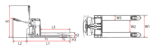 | バッテリー入れ替えが簡単な充電式!電動アシストで、女性でも楽々運搬が行えます。 バッテリー満充電でおよそ連続3時間のご使用が可能です。 バッテリー残量インジケーターを搭載しておりいつでも電池残量を確認できます。 ![]() 人間工学に基づいて設計された操作ハンドルは高い操作性と高機能を兼ね備えています。 また、オイルポンプはオイルが漏れにくいキャスティング(鋳造)製法。 騒音を抑えたPUキャスター&ダブルローラー採用でスムーズかつ安定感抜群です。 走行中の事故を防止する為のクラクションボタン付 両面パレット等のフォーク挿入時に活躍するトウローラー付 ![]() ![]() 満載2トンで、連続使用は約3時間、または10kmの距離 長時間使用でもバッテリーを簡単に入れ替えできますので便利です。 ※長時間使用しない場合には、バッテリーが空にならないように定期的にバッテリーを充電して下さい。 ■家庭用コンセント充電可能 ※バッテリーを取り出さずに充電可能 ■キャスティング(鋳造)製法 オイルポンプはオイル漏れしにくいキャスティング(鋳造)製法 溶接で作られたものとは異なり、オイルが漏れにくい構造となっております。 ■前輪はダブルローラーを使用で安心にスムーズな走行可能です。 耐久性・耐摩耗性に優れたPU(ポリウレタン)を使用で音も比較的静かなです。 ■人間工学に基づいて設計されているため、フォークの昇降・走行時の事故を防止するための警笛ボタンが付いて使いやすいデザインになっております。 安全装置ボタンを押すと、本体は前方の方向に動き、壁などへの挟まれを防止します。 バッテリー残量表示でバッテリー不足による急な使用不可などの問題も事前に確認できます。 ■女性も簡単操作可能、体力不要で誰でも使える。 ラクラク荷移動できます。 簡単操作で、電子制御無段変速採用により走行スピードが自由自在。 スムーズな走りを実現。 フォークの昇降は電動油圧式、走行も電動式なので、体への負担が軽く、女性でも楽々運搬が出来ます。 ■寸法図 ![]() ■仕様