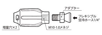 | 波動エアーの打撃で、凹凸した場所でも強力ブロー! ●パルスブローにすることで、より除塵力がアップ。 ●フレキシブル空気冷却ホースに取付けて使用できるコネクタつき。 ●切削粉・粉塵・水分・オイルの吹き飛ばしに。 ![]() ■寸法図 ![]() ![]() ■仕様
