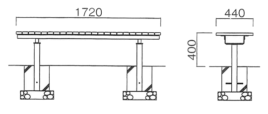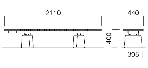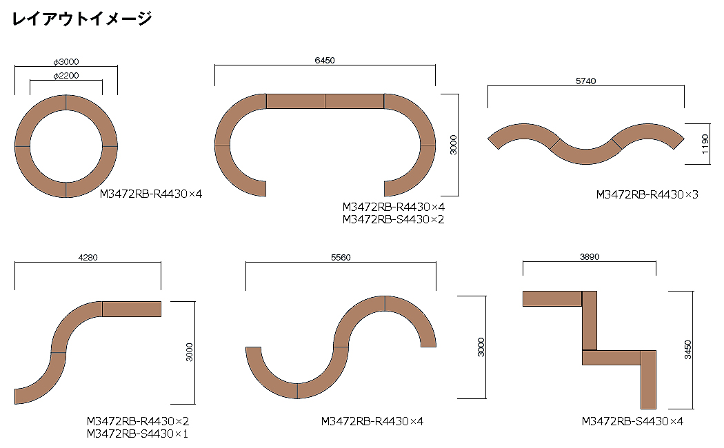 | 屋外用90°カーブベンチ(再生木材EMウッド)コンクリート脚/品番 M3472RB-R4430NM-EM |