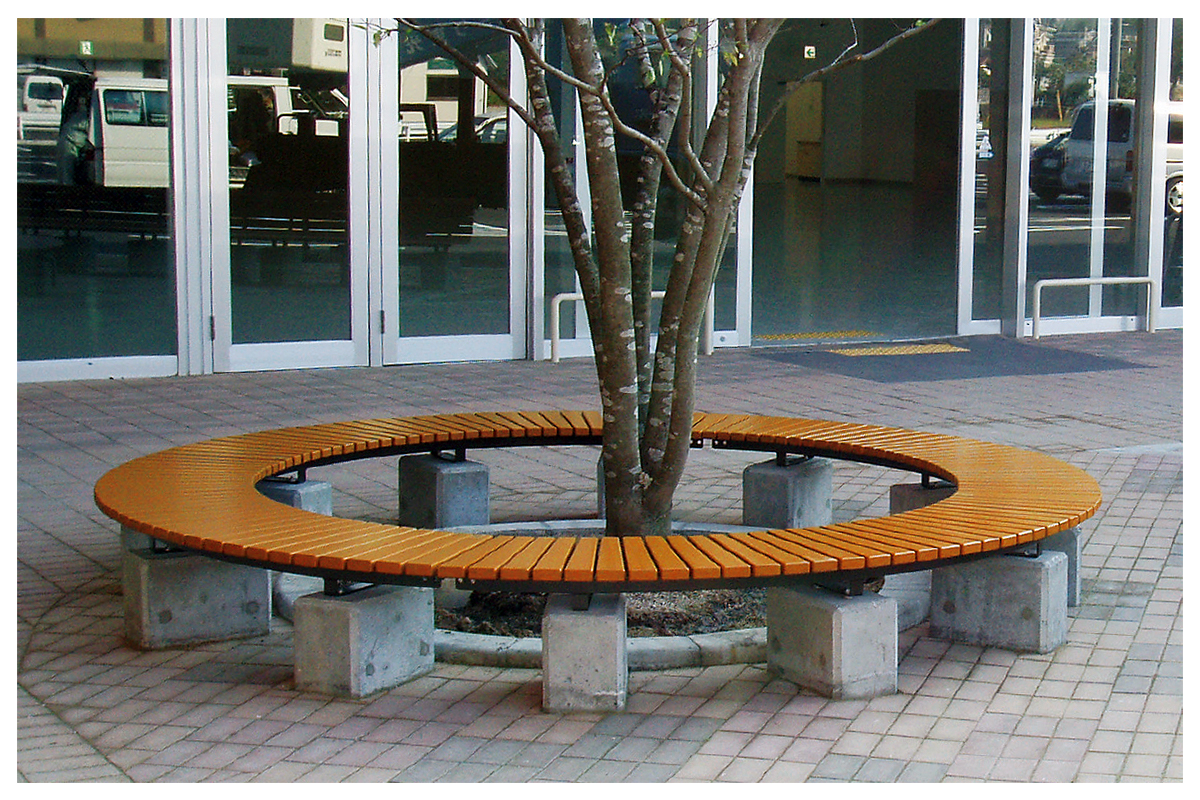 ●廃木材と廃PP樹脂を高度な配合技術で複合化。もっともリサイクル性が高く、再生木材・人工木材業界初の抗菌仕様の素材を使用した屋外用ベンチです。