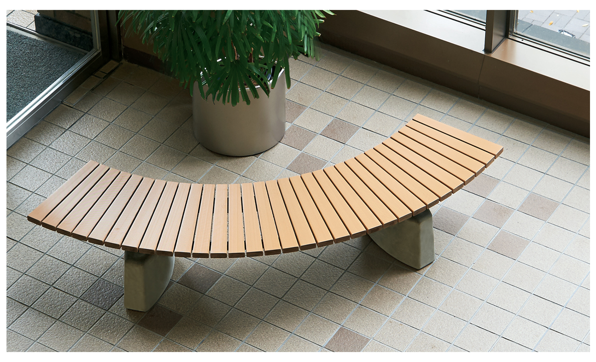 屋外用90°カーブベンチ(再生木材EMウッド)コンクリート脚