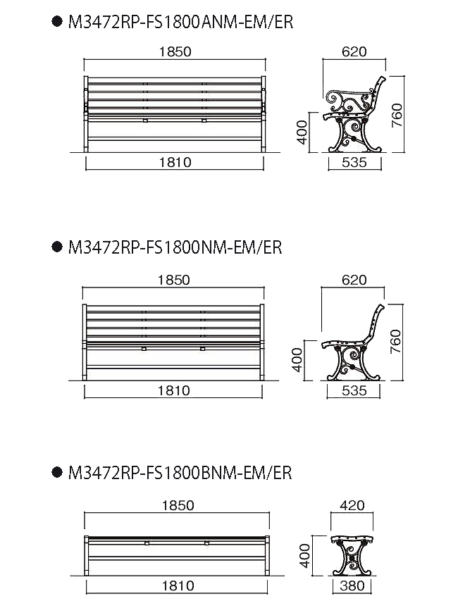 | 屋外アンティーク調スクロールベンチ(再生木材EMウッド)/品番 M3472RP-FS1800ANM-EM |