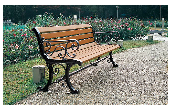 木質素材の座面と装飾性のある鋳物脚を組み合わせたデザインで、公園・商業施設・公共スペースなど様々な場所に調和します。