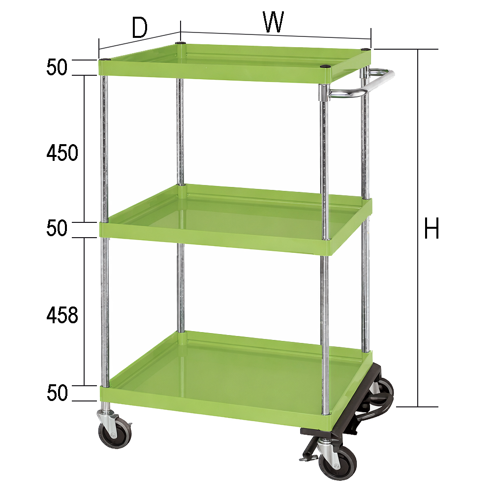 中量フットブレーキ付ワゴン台車(750×500×1200)グリーン/φ100ゴム車 品番 M350SP-075123BRS 価格は下記をご覧ください。 |
