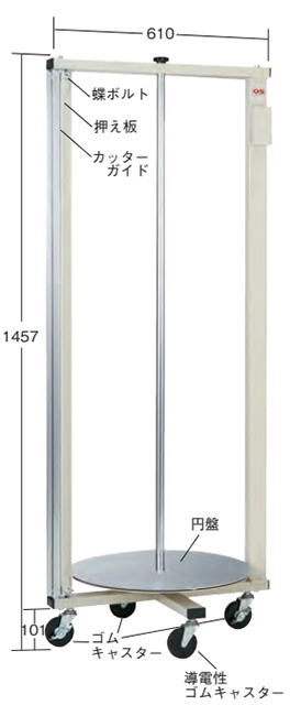 | ボールキャスター付きで、重たい片(巻)ダンボールもOK! ※写真は使用例 梱包資材・カッターナイフは付いておりません。 ![]() ■縦型 梱包資材を立てて保管するので設置場所を選びません。 蝶ボルトとスプリングで(梱包資材の)厚さに応じて調節が出来ます! ![]() ■寸法図 ![]() ■仕様