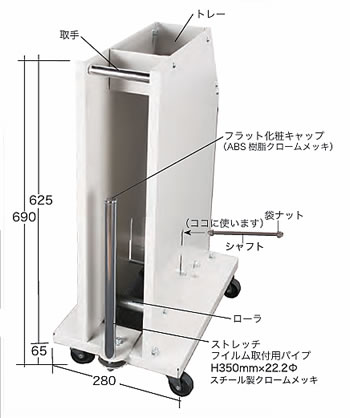 | 手動梱包PPバンドホルダーワゴン(ストレッチフイルムストックパイプ付)/品番 M39SPP-BW120ST | 【詳細表示】 | ||||||||||||||||