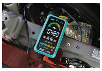 | 大型カラーLCDの小型デジタルサーキットテスター バックライト・バーグラフ付き ![]() ■特長 ●真の実効値型。 ●明るいバックライト、バーグラフ付きで見やすい大型カラーLCD。 ![]() ●滑りを防ぎ、本体を衝撃から護るホルスターが付属。 ●直流/交流電圧測定・抵抗測定・導通試験を自動選択するオートファンクションモード。 ●無駄な電池の消耗を防ぐオートパワーオフ機能、ディスプレイホールド機能付き。 ●非接触電圧検知機能(NCV)、活線検知(LIVE)付き。 本体上部のNCVセンサーを、コンセントなど交流電圧の活線に近づけると、LCD表示、ブザー音、LEDの点灯で知らせます。 ●本体背面にLEDライト付き。 ●錆に強い金メッキ仕様のテストリード。 ■使用例 オルタネーター充電電流の測定 ![]() ■測定仕様(23℃±5℃、80%RH以下、ただし結露のないこと)