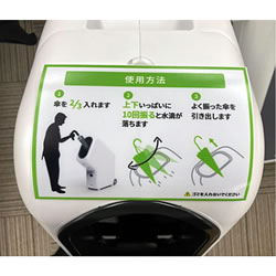 | 傘を本体に差し込んで、上下に10回ほど振るだけで、約90%の水滴を取ることができます。 本体内部のシリコン製のヒダに傘を当てることで効率良く水滴が落ちます。 かかる費用は本体購入の際の初期費用のみです。 ビニールや吸水マットのような消耗品の購入は不要です。 ![]() ■オリジナルデザインに変更が可能 前面部分をオリジナルデザインに変更することができます。 入口付近に置くことが多い傘のしずく取り機は、通行客にも印象に残りやすい広告アイテムとして活用できます。 ![]() ■特徴 雨傘乾燥機/M4419A-101Z ●上下に約10回振るだけで傘のしずくが取れる ●たまった水は3パターンで排水可能「通常排水・ホース排水・外付けタンク(3L)に溜め排水」 ●消耗品がなくサステナブル ●キャスター付きで移動もらくらく ●側面は企業ロゴや広告等を入れることも可能 ![]() ■使用方法 ![]() ■移動可能 ![]() ■たまった水は3パターンで排水可能 底部排水、ホース排水、タンク貯水 ![]() ■特徴 雨傘乾燥機/M4419A-202Z ●左右に約10回振るだけで傘のしずくが取れる ●たまった水は2パターンで排水可能「通常排水 ●本体内部(5L)に一時貯水後、移動して排水」 ●消耗品がなくサステナブル ●キャスター付きで移動もらくらく ●側面は企業ロゴや広告等を入れることも可能 ●高さと角度調整が可能 ![]() ■左右に約10回振るだけで傘のしずくが取れる ![]() ![]() ■人体にとって最も便利な位置と角度で動作 58° ![]() ■高さ高さ調整可能 身長問わず使えます。 ![]() ■底部排水口 ![]() ■仕様