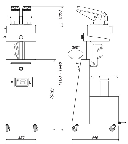 | コンセントに繋げばどこでも使える移動式超音波加湿器 ●UVランプを標準搭載しています ●大容量のポリタンクを使用しているので、1回の給水で長時間の使用が可能 ●自由な方向へ霧を噴霧できます ![]() ※画像はM4433PU-43H ■特長 ●ブースターファンによるワイド加湿 ●ストッパー付きのキャスターで移動がラクラク自由 ●加湿器の高さを自由に調整できるアジャスタ一付き ●配管不要、大型ポリタンク搭載(13l×2個)1回の水補給で8時間の連続運転が可能 ●湿度調整機能搭載:湿度センサー、湿度表示、湿度設定機能付き液晶パネルで分かり易く表示 ●高級ステンレスの美しい防錆製ボディ ●“UVランプ搭載”無菌の衛生・安全加湿を行います。対人用や食品加工に安心してご利用できます ■移動式超音波加湿器はこんな場所に最適です ●発熱が多く、空気が乾燥している部屋(オフィス、コンピュータールームなど) ●夏場のオープンエリア等に「打水効果」として ●スポット加湿や静電気防止対策に ●印刷、繊維、紙器、木工、フィルムなどの工場 ●麺類の乾燥工程、パン生地の発酵など食品加工に ●洋蘭、花卉栽培などの園芸用加湿器として ![]() ■タイプ・寸法図