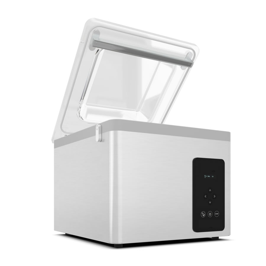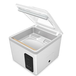 優れたデザインの高性能モデル![]() ■3つのプログラム 最大3つのプログラムを設定・保存できます。 ■ソフトエアー機能 鋭利なものや、デリケートなものでも、食材や袋を傷めずに真空包装できます。 ■センサーコントロール チャンバー内の圧力を検知し、設定した真空度に達すると自動で停止します。 ■レッドミート機能 シール工程中に、少量の空気を急速注入し、赤身肉の脱ガスを抑制。 保存期間を延ばし、真空袋内のエアポケット発生を防ぎます。 ■メンテナンス通知機能 所定のサイクル数に達すると、自動でメンテナンス時期をお知らせします。 ■ポンプクリーニング機能 ポンプ内の水分を除去して腐食を防ぎ、機体のコンディションを維持します。 ■埋め板 食材をシールバーに対して最適な位置に調整し、包装品質を安定化させます。 また、チャンバー内の容積を減らすことで、真空時間の短縮にも繋がります。 ■簡単な操作性 3つのプログラムが登録可能で、真空度等を日本語表示のパネルで簡単に調整できます。 非常に簡単な操作により、誰でも手軽に扱うことが可能です。 ![]() ■洗練されたデザイン 非常に洗練されたデザインが特徴的です。 オープンキッチンやカウンターの裏でも、その機能美を存分に発揮します。 丸みを帯びた角、シームレスな筐体のデザインにより、お手入れも簡単です。 ![]() ■最新のヒンジシステム 筐体内にあるヒンジシステムは、蓋とともにゆっくり降下するため、安全でスムーズな開閉を実現しています。 これにより、摩耗を抑え、機械を長く安心してお使いいただくことが可能です。 ![]() ■タイプ/シールバーの配置