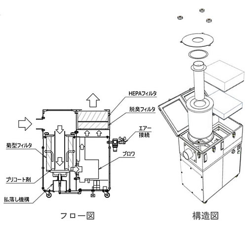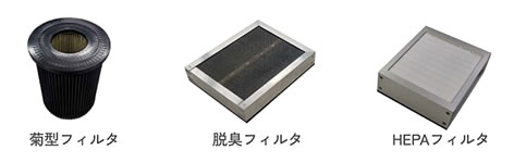 | お手軽シンプルにヒューム対策 レーザー加工、はんだ作業の付着性ヒュームをゼオライトで除去 ![]() ■内面ろ過とプリコートでフィルタ交換が簡単 ●集じんと脱臭を1台で 菊型フィルタ、脱臭フィルタ、HEPAフィルタ ●プリコート機能 はんだヒューム99%除去 ●吸引風量セレクト機能 使用状況に合わせて吸引力を調整可能 ●吸引低下お知らせ機能 フィルタ目詰まりをランプでお知らせ ●100V電源 100Vコンセントで運転可能 ![]() ![]() ![]() ![]() ![]() ■仕様