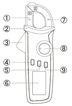 | ベーシックなACクランプメータ。 ●変化する値を固定して表示できるデータホールド機能や、測定時の最大値を更新して表示できるMAXホールド機能を搭載。 ●電源の消耗を抑えるオートパワーオフ機能付き。 ●暗所の測定においても表示が確認できるバックライト機能を搭載。 ![]() ■各部名称 ●本体