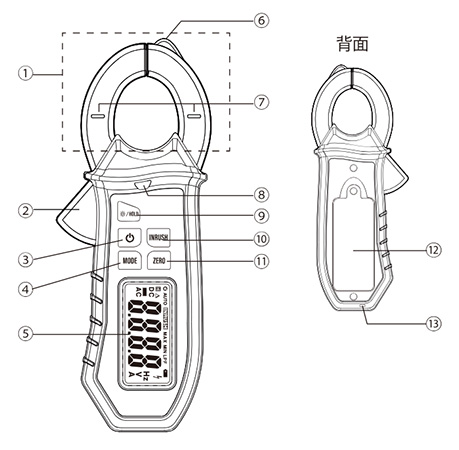 | 交流電流と直流電流の測定ができるクランプメータ。 ●突入電流の測定が可能。サージ電流など、瞬時に発生する大きな電流の測定が可能です。 ●非接触式検電機能(NCV)。AC活線をLEDランプでお知らせ。 ●データホールド機能 ●電池の消耗を防ぐオートパワーオフ機能。 ●暗所でも測定した値が確認できる液晶画面のバックライトを搭載。 ![]() ■使用例 ●直流電流測定イメージ ![]() ●低圧検電イメージ ![]() ■各部名称 ●本体
