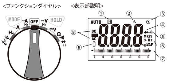 ※ 交流電圧・交流電流・周波数の確度保証は正弦波に限る。 ※ − は確度保証していません。