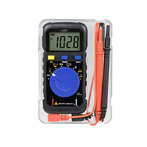 | 薄型で手のひらサイズのデジタルマルチメータ。 ・携帯に便利な収納ケース付きです。 ・測定機能は、直流電圧、交流電圧、直流電流、交流電流、抵抗、ダイオードチェック、導通チェック、周波数、コンデンサチェック、1.5 V乾電池チェックの各機能を有しています。 ・電池の消耗を防ぐオートパワーオフ機能を搭載しています。 ・テストリードの交換ができる脱着式。 ![]() ■製品画像 ![]() ![]() ![]() ![]() ![]() ■仕様 ●電気的性能