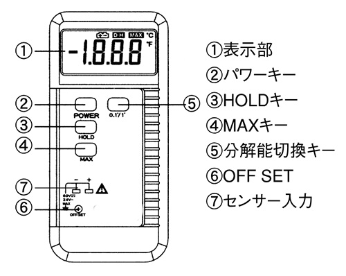 | Kタイプ熱電対に対応した温度計。 ・Kタイプ熱電対センサー(全18種類・別売)(MB8K-200ARC)を接続して温度測定を行います。 ・測定値を固定表示するHOLD機能付き。 ・測定最大値を固定表示するMAX HOLD機能付き。 ![]() ■製品詳細 ![]() ■仕様
