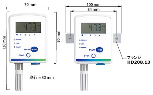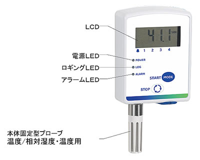 | 大メモリ容量526,000データ(1要素、インターバル5分で5年超の長期記録が可能) 3種のプローブ(本体固定/分離/内蔵)で幅広い用途に対応 ロギングスタート/ストップ、アラームしきい値の設定が可能 付属ソフトウェアによるデータダウンロード・管理 ACCREDIA(IAJapan同等)校正証明も可能 取付け簡単な壁掛け式 ![]() ■主な特長: ●温度または相対湿度・温度・露点のデータを記録 ●内蔵型センサ、本体固定型またはケーブル付分離型プローブ ●マニュアル(ディレー時間設定可能)または、予めプログラムされた日時での自動ロギングスタート ●しきい値が設定可能な測定値アラーム ●USB出力 ●PDFおよびCSV形式でログを自動発行 ●設定・モニタ・データダウンロード用のソフトウェアを付属 ●FDA21CFR part11に適合したソフトウェアオプション ●LCDディスプレイおよびLEDで電源・データロギング・アラーム状態を表示 ●長寿命リチウムバッテリー ●優れた耐環境性 温度、相対湿度(RH)、露点のモニタに使用するコンパクトなデータロガーです。 当データロガーシリーズは、測定要素やプローブの種類が異なる様々なモデルを取り揃え、幅広い用途に使用できます。 すべてのモデルについて、LCDディスプレイあり/なしが選択可能です。 ■モデル: ●1CH:温度専用(モデルにより、内蔵型/本体固定型/ケーブル付分離型センサ) ●1CH:相対湿度・温度用(本体固定型/ケーブル付分離型センサ) ■用途: ●食料・医薬品・植物など腐敗しやすい物品の輸送・保存時のモニタ ●研究・実験 ●博物館・文書保管庫 データロギングは、前面のボタン操作により、マニュアルで開始/停止できるほか、ロギングを開始/停止する日時を予めプログラムすることも可能です。 また、開始ディレー機能により、スタートボタンを押した後、設定したディレー時間で(ディレー時間が経過した時点で)ロギングを開始できます。 ![]() ひとつの測定物理量に対して上限・下限のしきい値が設定でき、測定値が予め設定されたしきい値を超えた場合、アラームが発せられます。 当データロガーはデータロギング後、収集データのグラフを記載したPDF形式のレポートと、全測定値を記載したCSV形式のログを自動発行します。 発行したPDFファイルは、専用のソフトウェアを使用することなく、USBポート経由でPCにコピーできます。 当データロガーは、USBフラッシュドライブとして認識されます。 当データロガーの基本アプリケーションソフトウェアHD35AP-Sは、データロガーの設定、測定のリアルタイムモニタ、取得データのデータベースへの転送を可能にします。 当ソフトウェアは、USBドライバのインストールなしでPCに接続できるため、すべてのバージョンのwindows® OSに適合します。 アプリケーションソフトウェアのオプションHD35AP-CFR21では、FDA21CFR part11の要求事項に応じて、取得データのセキュリティやデータロガー本体の設定を行うことができます。 内蔵3.6V塩化チオニルリチウム電池(Li-SOCL₂、充電不可)により電源が供給されます。 センサは予め工場で校正されており、ユーザーによる校正は不要です。 必要な場合は、アプリケーションソフトウェアHD35AP-Sを使用し、新規校正を行えます。 すべてのモデルは、事前見積りにより、ACCREDIAの校正証明を受けることができます。 ■外形寸法 ![]() ■各部の機能 ●電源LED(POWER(電源)):データロガーの電源がONのとき、10秒ごとに短く点滅 します。 ●ロギングLED(LOG(ログ)):ロギング中、10秒ごとに短く点滅します。 ●アラームLED(ALARM(アラーム)):測定物理量がアラーム状態になった場合、10秒ごとに短く点滅します ●START/MODE(スタート/モード)ボタン:短く押すと、表示される情報の種類が切り替わります (測定値/日時/アラームしきい値/ロギング設定)。 2秒以上押し続けると、マニュアルでロギングを開始します。 LCDなしモデルでは、START/MODE(スタート/モード)ボタンはSTART機能(ロギングスタート)のみに使用します。 ●STOP/(ストップ/スクロール)ボタン:短く押すと、表示される要素が切り替わります (表示される情報の種類を切り替えるには、START/MODE(スタート/モード)ボタ ンを操作します)。 2秒以上押し続けると、マニュアルでロギングを停止します。 LCDな しモデルでは、STOP/(ストップ/スクロール)ボタンはSTOP機能(ロギングストッ プ)のみに使用します。 ![]() ![]() ■温度プローブ(NTC10kΩ(@25℃)センサ) MC8MNL-319S-35THPB 温度プローブ、NTC10kΩセンサ、動作温度-40~+105℃、精度±0.3℃(0~70℃)/±0.4℃(左記以外の範囲)、本体寸法φ5×40mm、AISI316ステンレススチール管、4極M12メスコネクタ、ケーブル長3m ![]() ■相対湿度・温度用複合プローブ MC8MNL-319S-35RHPB 相対湿度・温度用複合プローブ、相対湿度センサ測定 範囲0~100%RH、温度センサNTC10kΩ(@25℃)、測定範囲-40~+105℃、相対湿度センサ動作温度-40~+80℃、4極M12メスコネクタ、PBTテクノポリ マー製本体、ケーブル長2m ![]() ■仕様