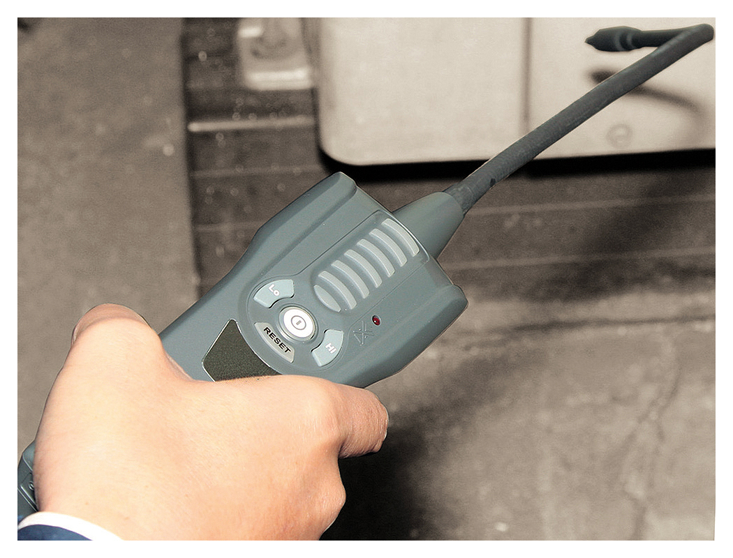 | ■特長 ●コストパフォーマンスに優れたリークディテクタのスタンダードモデル ●3段階感度切替による多色ディスプレー ブザー音と7段階LEDインジケーター(3色)で漏れ検出表示。Lo/Hi ボタンで感度を3段階に切換。 ※電源ON時は中感度 ![]() ●キャリングケースにコンパクト収納。 ![]() ■オートゼロ機能 [RESET]ボタンを長押し(2秒間)すると、オレンジに点灯します。 この雰囲気ガスの状態を自動でゼロにし、より濃度の濃い状態でしか反応しなくなります ■マニュアルモード ガスを検知した状態で鳴り続けます。 [RESET]ボタンを押すことにより、ゼロ調整され、より濃度の濃い所でしか反応しなくなります。 ■使用例 ![]() ■仕様