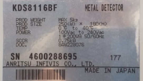 | 中古アンリツ金属検出機(通過幅300mm通過高さ180mm)/品番KDS8116BF 問い合わせ番号 Z-01072-1 |