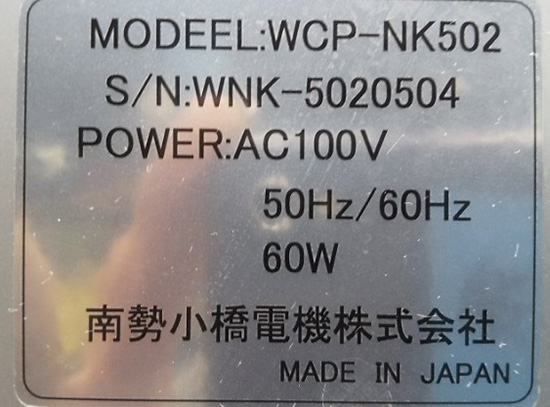 中古電動水切り圧縮機 品番 WCP-NK502 問合せ番号 Z-01072-2 |