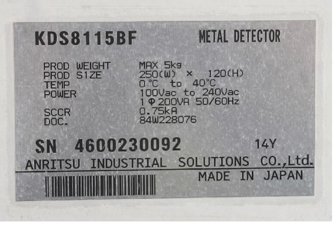 | 中古アンリツ高感度金属検出機 通過幅300mm 通過高さ120mm(非防水)/品番KDS8115BF 問い合わせ番号 Z-01073-7 |