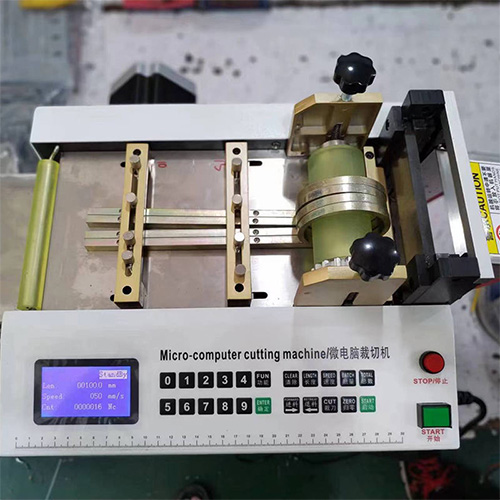 | この機械は、電子産業、自動車・摩擦部品産業、電化製品、モーター、玩具、変圧器、衣料、手工芸品などの幅広い産業で使用されています。 PVCブッシング、熱収縮ブッシング、黄蝋管、グラスファイバー管、フェロフルオロカーボンブッシング、シリカゲル管、ゴム管、輸液管、PE管、細線、電線束、ニッケルシート、銅箔などの切断に特化しています。 アルミ箔などの定尺品、ゴムストリップ、熱収縮フィルムの定量切断も可能です。 ![]() ■ 特長 1) 高速切断:1分間に約100~120カットが可能です。(カット長50mmの場合) 2) 高精度:切断長さの精度が高く、0.1~9,999.9mmの範囲で設定できます。 3) 切断方式:コールドカット方式。オプションでホットカットにも対応可能です。 ホットカットは、ナイロン織テープ、ポリエステル織テープなど、熱シールが必要な材料に適しています。 4) 自動運転:切断長さと数量を設定するだけで自動運転します。省力化と高い作業効率を実現します。 5) 自動停止機能:運転中に材料がなくなると、自動的に停止します。 6) メモリー機能:設定した切断長さ、数量、速度は、電源のオン・オフを行っても消去されません。 7) 用途:チューブ、ケーブル、織テープ/リボン/ベルト、細径ワイヤー、シート、フィルムなどの切断に適しています。 8) 高速・高精度設計:非粘着性材料の切断に最適な設計です。 外径13mm以下のチューブに対応。 (カスタマイズで切断幅は100~1,600mmまで対応可能です。) ■各部名称 ![]() ■仕様