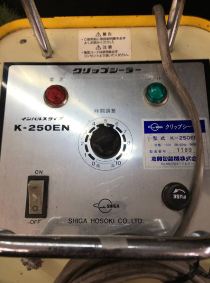 中古上下両熱ハンディーインパルスシーラー(シール寸法W250×5mm) 品番 K-250EN 問合せ番号 Z-01075-6 |