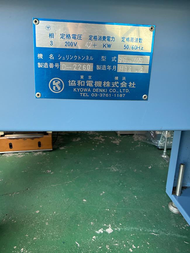 中古シュリンクトンネル 品番 VS-300 問い合わせ番号 Z-01076-6 |