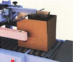 1台で2つの機能を。 お手軽製函+お手軽封緘+新化。 1台で、ケースの底面折込テープ貼り、上面封緘作業までサポート ケースを開き、後の内フラップを折り込んで、機械に入れるだけ 上面フラップ3方自動折込 |
