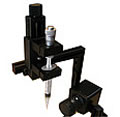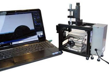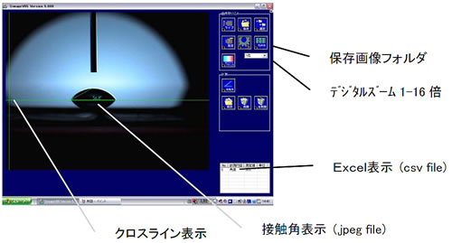 試料表面へ水滴を滴下し、水の接触核を測定することにより試料表面評価を定期的に行うシステムです。 PC画像解析による専用計測ソフトで液滴画像の表示、マウスを用いて液滴画像のカーブフィッティングし接触角度計算をθ/2法によって自動的に接触角度を表示します。Excelへのcsvデータ出力、液滴画像のbmp保存が行えます。小型コンパクトで持ち運び可能です。 |