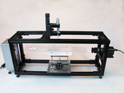 このシステムは、ステージラボジャッキ上に測定対象物をセットし、滴下マイクロシリンジにより定量な吐出量で作成した水滴へステージを昇降させることにより、基板上に滴下します。 基板上の水滴画像をUSBケーブルを介してWindowsパソコンへ取り込みます。取込まれた水滴画像のカーブを手動クリックする事により、接触角演算ソフトにて接触角を測定するものです。 |