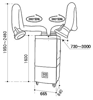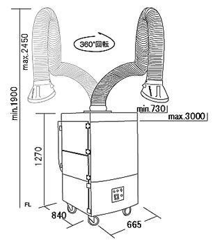| ■特長 ●ボディはスチールで堅牢、車輪の採用で安全で確実な取り回し出来る。 ●高い捕集性(99%)とフィルター効率(12m2)を実現。 ●アームは3m有るので本体部を移動させることなく広範囲に使用出来きます。M1047C-205Y/206Yは3mアームが2本有るので本体部を移動させることなく広範囲に使用出来きます。 ●清掃できる長寿命フィルターを採用し、低コスト。 ●自動フィルターアラームが清掃時期をお知らせ。 ●清掃は専用ブローガンで安全に作業、袋に回収。 ■コントロールパネル