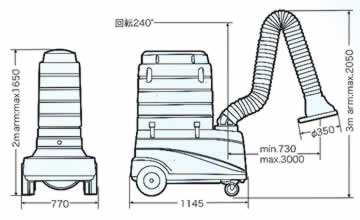 M1047W-355Yは3mアームとカートリッジフィルター、回収ファンを一体化した移動型集塵ユニットです。 有害な物質も内蔵フィルターにて濾過し排出するので、クリーンな作業環境を確立できます。 |