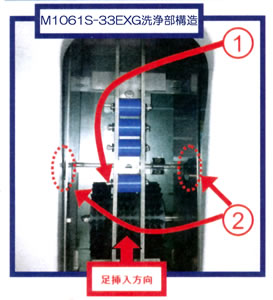 | ■特長 ①左右のジェットエアーとブラシの力で靴に付着した汚れを落とします!! ②エアーによる洗浄なので大切な靴を傷つけません!! ③洗浄部に足をおいて頂き、靴を前後に軽く動かして貰うだけ!! ④付属のエアーガンで、気になる部分も徹底洗浄可能!! ⑤溜まったゴミはゴミケースからそのままゴミ箱に捨てるだけ!! ■M1061S-72EXG洗浄部構造