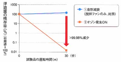 ■除菌 空気浮遊菌、ウイルス対策に 食品が変敗する原因は90%が空中浮遊菌による二次汚染です。オゾンガスは空中浮遊菌を減少させます。 ■オゾンによる除菌のメリット ●酸化力により細胞膜を破壊し菌を不活化するので薬剤耐性菌を作りません。 ●オゾンは自然に分解して酸素に戻るため残留しません。 ●空気原料のため薬剤費がかかりません。 ●オゾンガスが隅々までいきわたります。 ■付着菌に対する殺菌性能評価試験 (ガラス片付着菌に対する試験結果) ![]() ■浮遊カビに対する殺カビ性能評価試験 (クロカワカビ(胞子)に対する試験結果(初期値=100%)) ![]() ■メンテナンス .●取り外して水洗いが可能です。 ![]() ![]() ■寸法図 ![]() ![]() ![]() ■製品仕様