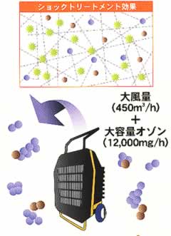 ■大容量だからできる、こんな場所、ニオイ ![]() ![]() ![]() ■オゾン脱臭のしくみ ![]() ■オゾンの専門知識を持った作業員が安全に作業を実施します。