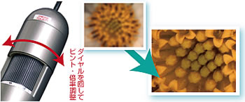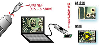 | ■特長 ●広範囲の拡大率に変更可能 低倍率から高倍率まで、使い勝手の良い範囲で拡大率が変更できます。個人用からプロユースまで幅広い目的でご使用いただけます。対象物と密着した状態で約55 倍と約200 倍の2 か所でピントが合います。密着した状態では手ブレは起きにくいので、この倍率で手持ちでの観察や撮影が可能です。(約55倍~200 倍の間での使用には制約がございます。この間の倍率をご利用される場合は、先端部取り外し可能なモデルのご利用をお勧めします) ![]() ●白色LEDライトを搭載 先端部にLED 照明を内蔵しました。照明がない場所でも利用できるだけでなく、外光によらない同じ状態で観察や撮影ができます。 またLED を消灯することにより、自然光を生かした観察や撮影が可能。 ![]() ●倍率ロック機構付き。 ピントと倍率を固定し不用意に動くことを防止する倍率ダイヤルロック機構を持った新ボディを採用。更にケーブルの断線を防ぐ接続部デザイン、ボディ剛性アップ、倍率ダイヤルの動きを改良し精密な調整が可能、マイクロタッチを改良、静電気防止、などの改良により機能と使いやすさが向上しました。 ![]() ●各種測定機能を搭載 静止画や動画の対象物の大きさなどを測定することができます。豊富な描画や測定ツールで様々な方法で測定や分析が可能です。測定値・描画・テキストは、編集したり、再編成したり、削除したりできます。EXCELに、測定データをエクスポートすることもできます。 ![]() ●コンピュータのUSBにつないで、モニター上で観察したり、記録ができます。高機能ソフトウエアを通じて様々な機能が利用可能です。(Mac用ソフトはWindows用ソフトと機能が異なります) ![]() ●アタッチメントの交換が可能 先端部のアッタチメントの取り外しや交換が可能。取り外すことにより、各種オプションアタッチメントの使用が可能になります。取り外した状態ではレンズと対象物の距離を近づけられるので、すべての拡大率が制約なく使用できます。(対応機種のみ) ![]() ●撮影ボタンを搭載 ボディにあるタッチ式スイッチにより、パソコンに触れることなく、画像を記録することができます。ボディを手持ちの状態で、そのまま撮影できるので、チャンスを逃しません。 ![]() ●多機能の観察・チャプターソフトが付属 パソコン対応(USB接続)機種用のソフトウエアです。モニターにM1080D-4113TTHシリーズの画像を表示したり、動画や静止画としてパソコンにキャプチャー(保存)したりできます。テキストや図形を貼り付けたリ、その色や大きさを変えたり、カメラの画質を調節したりなど、様々な機能が利用できます。自動距離測定、自動判別、IPカメラ、バーコード読み取り、など先進的な機能を備えております。 (1)自動距離測定機 表示中の画像や撮影した画像のエッジを検知し、エッジ間の距離を自動計測。エッジ検知基準を変更することで様々な状態の被写体に対応可能です。設定は保存できるので、連続測定も楽々。従来のマウスでの操作に比べ、精度アップと大幅な作業時間の短縮が可能になりました。 ![]() (2)自動判別機能 自動計測された距離データに対して判別のルールを設定できます。例えば、製品検査で製品の大きさが設計精度内に収まっているかどうか、製品を画面に表示させるだけで、一瞬で判別が可能です。検品作業などの効率向上に大きく貢献します。 ![]() (3)バーコード読み取り機能 2次元コード (QR コード ) やバーコードを画面上に表示させるだけで、コードを読み取ります。通常の大きさのコードだけでなく、当シリーズの特徴を生かして極小のコードも読み取れるので小さな部品にコードを組み込み部品管理するなど、応用の可能性が広がります。 (4)IP カメラ機能 当シリーズの画像を他のパソコンで遠隔からも見ることができます。LANやインターネットを介して、撮影画像を共有することができます。例えば、遠隔で、医師と患者が画像を共有したり、先生が学生の実験を見る、などに使用することができます。 (5)円の中心間距離自動測定 計測機能で描いた円と円との中心線を自動で計測します。基板の中でチップ間やコンデンサー同士の正確な距離を測ることが出来、作業効率が飛躍的に向上します。 (6)各種グリッド 観察画面や撮影画像に十字グリット線、円形、格子線を表示することが可能です。対象物のレイアウトに便利です。 (7)自動露出コントロール 従来からの自動露出に加え、より高度な自動画質コントロール機能を搭載。実際の色により近い自然な色合いを表現します。 (8)OLE 機能 (他のアプリケーションとの互換機能) 例えばサムネイルをドラッグして、撮影画像をデスクトップに貼り付けたり、直接フォトショップなどの画像ソフトで表示したりできます。また計測したデータをエクセルにエクスポートできるので、エクセルで保存や編集も可能です。撮影データは JPG または BMP で保存されるので、レポートや報告書などにそのまま利用でき