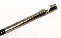 先端径がφ5.5のインターロック式チューブを採用。先端のカメラ部には4灯のLEDライトを搭載して、本体にある調整スライダーで明るさ調整、オフの切替が可能です。 また、SDカードへの動画・静止画の保存が可能なため、現場でリアルタイムに観覧する以外に、後から録画映像をチェックすることもでき便利に活用できます。テレビにコンポジット(黄色端子)で出力することで、大画面で大勢の人と一緒に観覧することもできます。 その他、側視タイプのアダプターが付属しています。 |