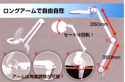 普段は照明スタンドとして、手元を見るときはルーペとしても使える便利なスタンド M1080FL-563DSはLEDで長寿命、球切れの心配なく使えます。 M1080FL-16WDSは蛍光灯で目に優しい光、広く照らせます。 |