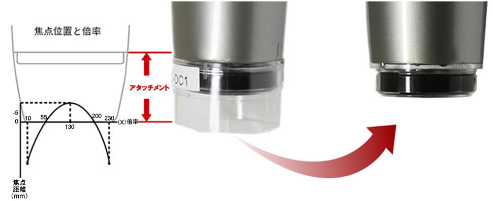●先端のアタッチメントの取り外しや交換が可能です。 ●取り外すことにより55〜199倍での拡大も容易にできるようになります。 ●ホコリを付せずレンズカバー付き。 ●SXGA(1280×1024)の高解像度で確認出来ます。 |