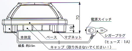 | ■特長 ●道路上での発煙筒の代わりとして ●道路工事中の後続車への警告灯として ●渋滞中の追突防止警告灯として ●トンネル内など発煙筒が使用できない場所に ●道路工事での警告灯として ●防災用として ●簡易盗難防止フック付属 ■1面発光型と3面発光型 ![]() ■発光色は赤・黄・緑・青の4タイプ ![]() ■マグネットで車両にも取り付け可能 マグネット部はゴムで覆われているため設置面にキズをつけません。 本機と取り付けた状態で一般行動を走行することはできません。 各関係機関の許可を得て、正しくご使用下さい。 ![]() ■使用例 ![]() ![]() ■落下に対し破損しにくい耐衝撃設計 ポリカーボネート樹脂にシリコンゴムプロテクター装備の耐震衝撃設計。 使用環境に十分対応できる耐衝撃&IP54の防塵・防滴設計 ![]() ■携帯に便利な手のひらサイズ RoHSや外部突起物規制にも対応。付属のフックで盗難防止対策も。 片手で持てる軽量設計。盗難防止などには付属のフックで対応可能。 盗難防止フック付き ![]() ■単3乾電池3個で驚異の明るさを実現 約16時間(1面発光の場合)連続点滅 ※1面発光では約16時間、3面発光で約8時間の連続動作。 連続動作時間は動作を維持し続ける時間であり、周囲の温度、使用する電池、電池寿命によって変わります。 時間内でも電池の寿命にともなって、徐々に減光していきます。 なお、ここではアルカリ乾電池を使用して場合です。 パワーLED使用 1面発光:3W×3個 3面発光:3W×9個 ![]() ■サイズ (mm)