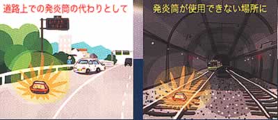 パワーLED使用 電池式携帯型&シガープラグ式 屋外用電子発煙筒 乾電池3個で事故が防げたら・・・ 視認距離:約1km(昼間) |
