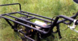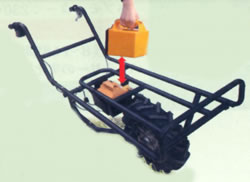 | ■特長 ●不整地に強い!ラグタイヤ採用! ![]() ●操作は、トリガーの調整で4.0kg/hまで速度調整可能! ![]() ●後方固定脚は2通りにセット可能! ![]() 畝間では250mm幅が便利です。 ●バッテリーの取り外し簡単! ![]() ●ラグタイヤなら不整地でも楽々走行! ![]() ●重い荷物だって楽々運搬! ![]() ■仕様