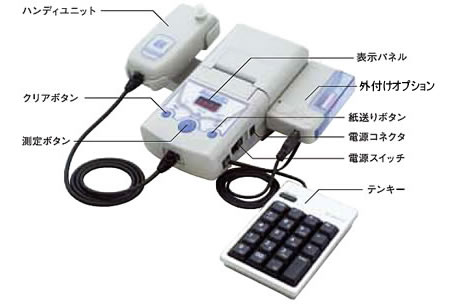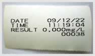 | ■カンタン操作で、記録を印字 ハンディユニットを手に持ち、「測定ボタン」を押します。 吹き込み口にマウスピースを軽く当て、約3秒間息を吹き込むだけで測定できます。 測定結果は、表示パネルへ数値が表示され、プリンターから印字されて出てきます。 また、音声ガイド機能で安心して操作ができます。 ![]() ■誤反応の無い、アルコールだけの結果を表示 一般的に販売されている「半導体ガスセンサー方式チェッカー」のように食べ物・飲み物で誤反応があっては困ります。 M1155LC-M4Tシリーズは、「燃料電池センサー」を採用している為、誤反応の無いアルコールだけの結果を表示できます。 「正しく測れる」当たり前の事ができるチェッカーを選びましょう。 ■センサーの交換は約2秒 アルコール測定のためのセンサー機能部分であるハンディユニットの校正(有償)を定期的に行うことで、アルコール測定精度を保持します。交換方法はセンサーをご注文いただき、新しいセンサーにケーブルを付け換えるだけです。 ![]() ■内蔵プリンターで測定記録を残す 測定ごとに内蔵プリンターから測定結果が印字されて出てきます。 ![]() ■オートカッター 測定紙を自動でカットするタイプです。 ■外付けオプション付タイプの場合、IDと氏名が印刷されますのでサイン・押印が省けます。測定時記録をUSBメモリに保存。エクセルでの管理が出来ます。エクセルもしくはブラウザ(Internet Explorerなど)での管理が可能。